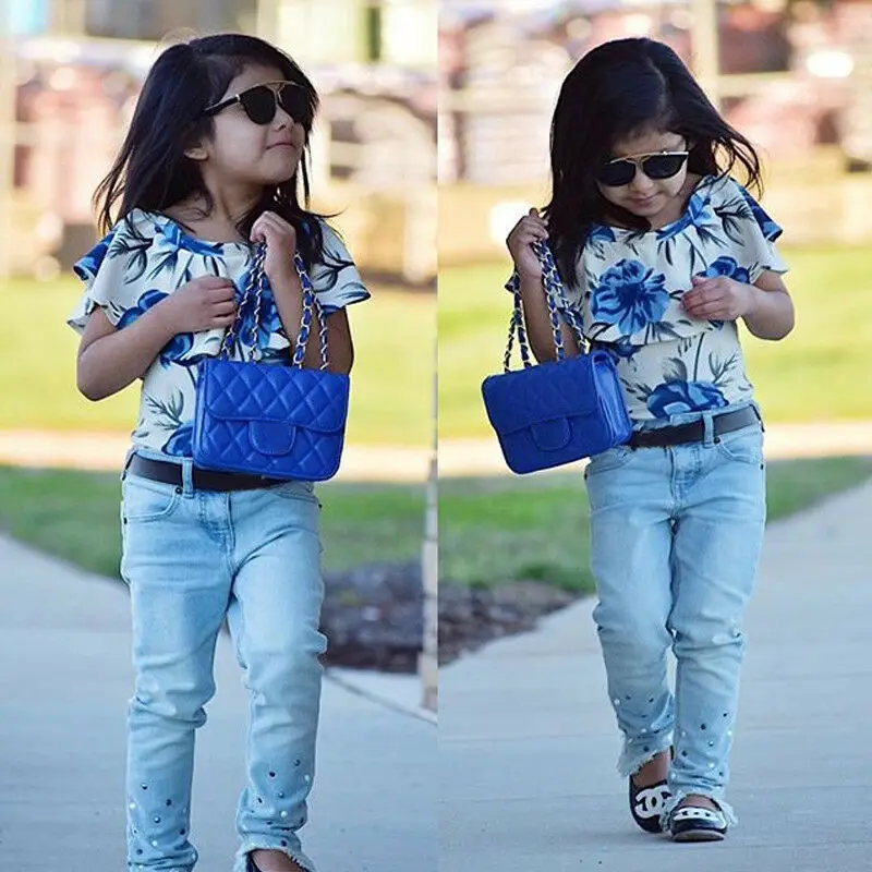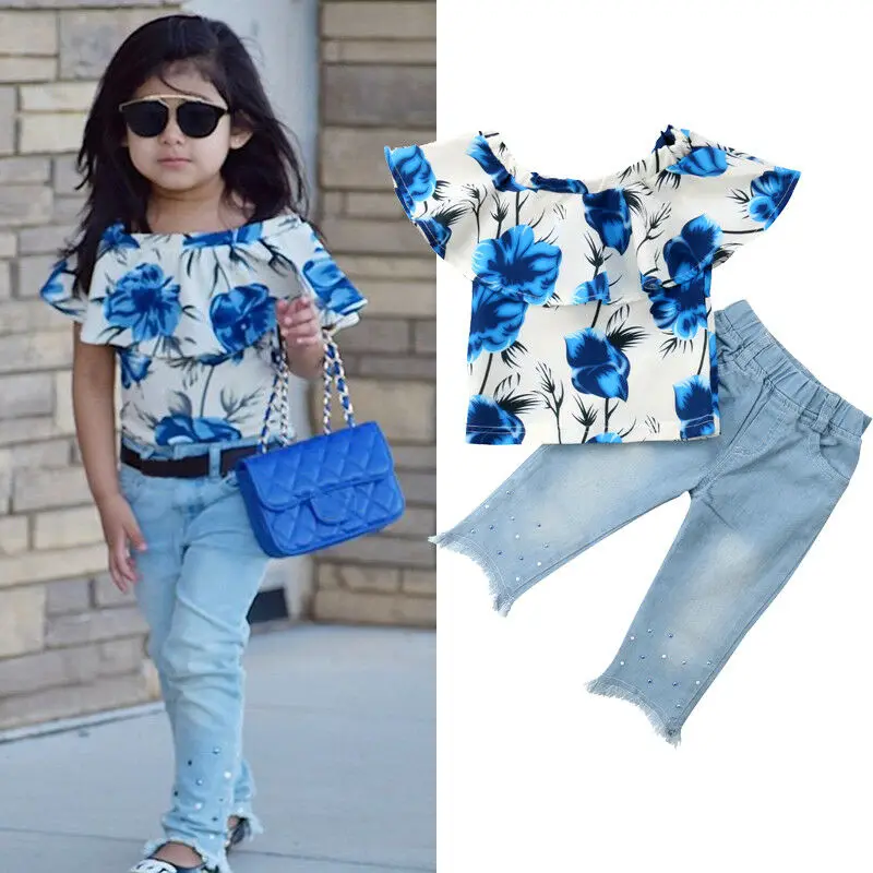 Cheap Offer of 2019 Autumn Clothes Toddler Kids Baby Girl Clothes Floral Tops T-shirt Denim Pants Trouser Jeans Cl