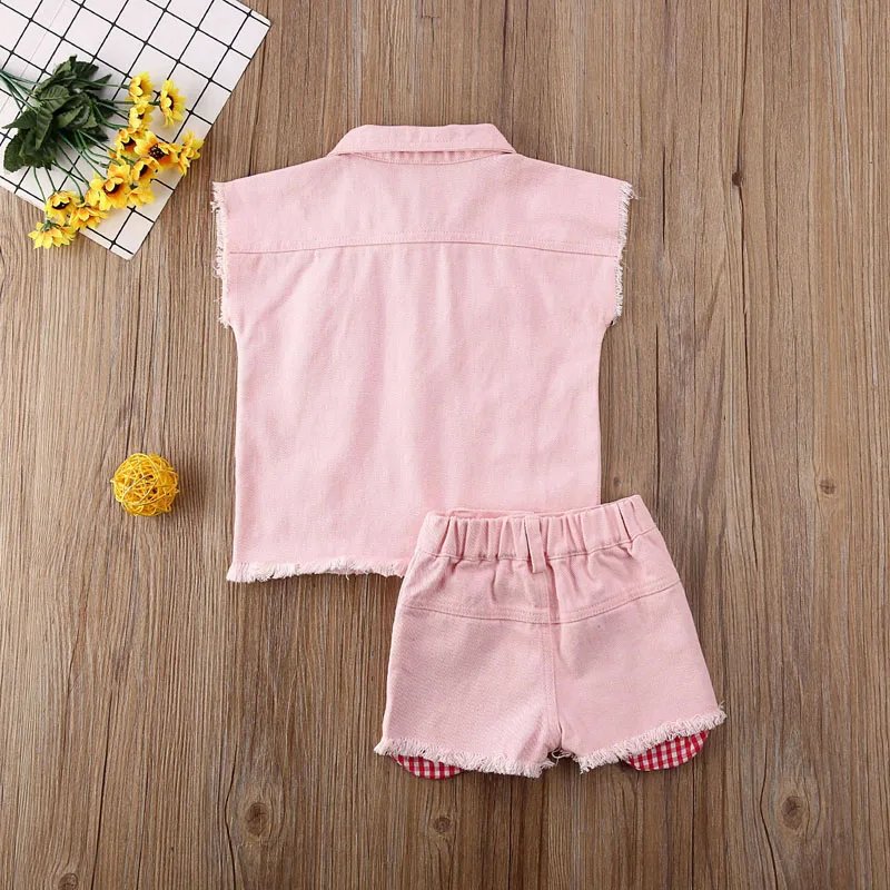 Good Offer of 6M-5Y 2PCS vestido Infant Kids Baby Girl Clothes Fashion Pearl Vest Denim Tops Waistcoat+Jean Short